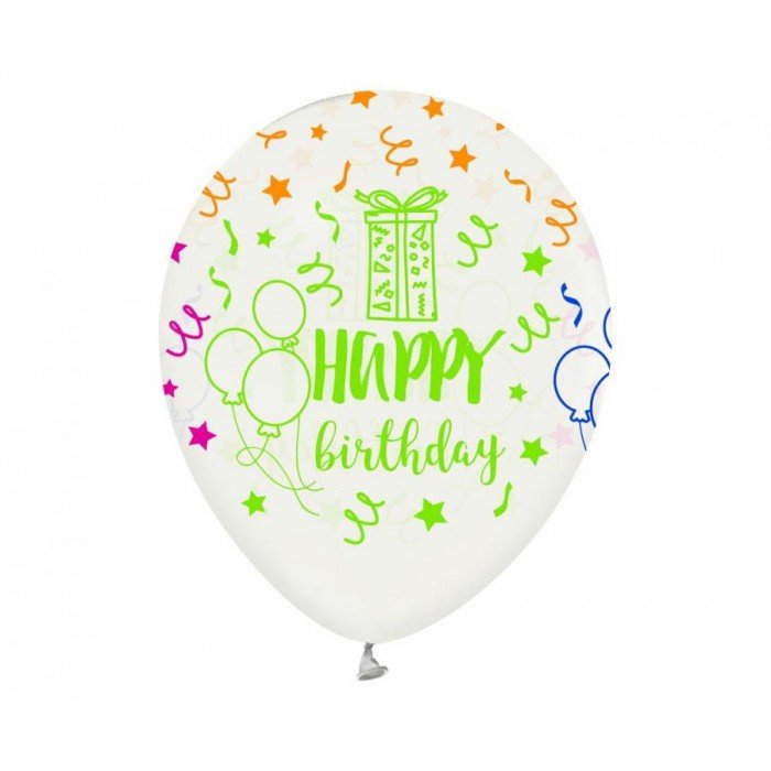 Happy Birthday Colorful léggömb, lufi 5 db-os 12 inch (30cm)